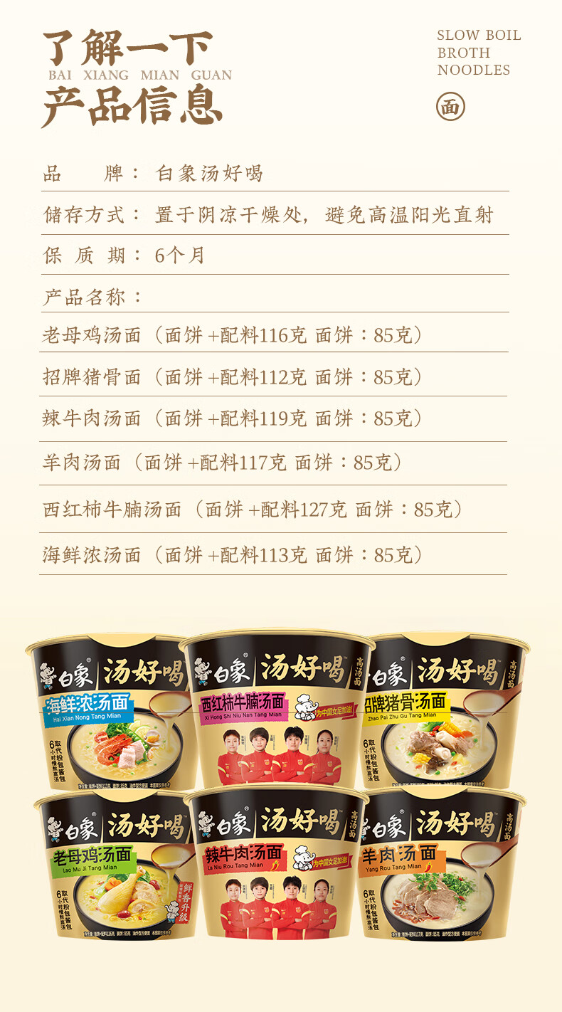 商品名称:675 白象 方便面 汤好喝112g*12桶浓汤泡面整箱装
